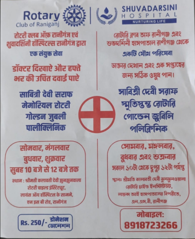 The Savitri Devi Saraf Memorial Rotary Golden Jubilee Polyclinic is. . .
